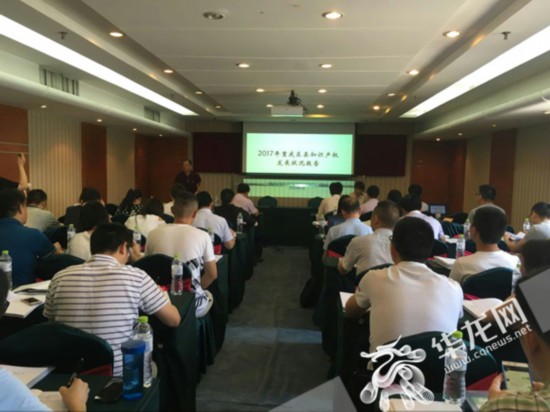 重慶市知識產(chǎn)權(quán)信息中心和重慶大學(xué)共同編制的《2017年重慶區(qū)縣知識產(chǎn)權(quán)發(fā)展?fàn)顩r報告》進(jìn)行了發(fā)布。記者 伊永軍 攝