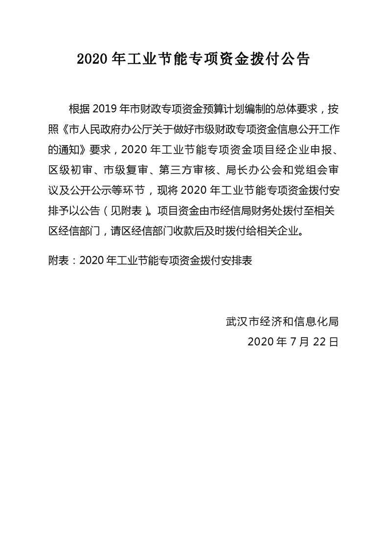 2020年工業(yè)節(jié)能專(zhuān)項(xiàng)資金撥付公告