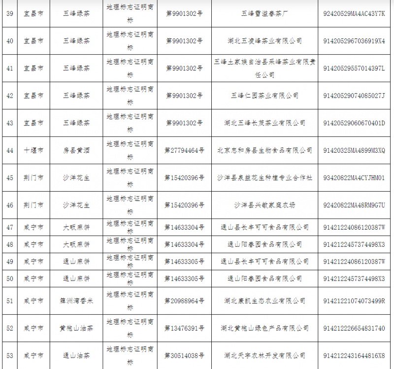 根據(jù)《地理標(biāo)志專用標(biāo)志使用管理辦法(試行)》和《國(guó)家知識(shí)產(chǎn)權(quán)局辦公室關(guān)于做好地理標(biāo)志專用標(biāo)志使用管理有關(guān)工作的通知》(國(guó)知辦函保字〔2020〕250號(hào))有關(guān)規(guī)定,經(jīng)國(guó)家知識(shí)產(chǎn)權(quán)局地理標(biāo)志保護(hù)數(shù)據(jù)管理系統(tǒng)核驗(yàn),省知識(shí)產(chǎn)權(quán)局對(duì)我省符合地理標(biāo)志專用標(biāo)志使用要求的“湖北盤(pán)龍國(guó)瑞醫(yī)藥有限公司”等2家地理標(biāo)志保護(hù)產(chǎn)品生產(chǎn)者和“武漢市蔡甸區(qū)萬(wàn)順農(nóng)產(chǎn)品專業(yè)合作社”等51家地理標(biāo)志證明商標(biāo)被許可人名單(見(jiàn)附件)予以公布,專用標(biāo)志下載口令以紙質(zhì)件形式統(tǒng)一下發(fā)至各市(州)知識(shí)產(chǎn)權(quán)局。